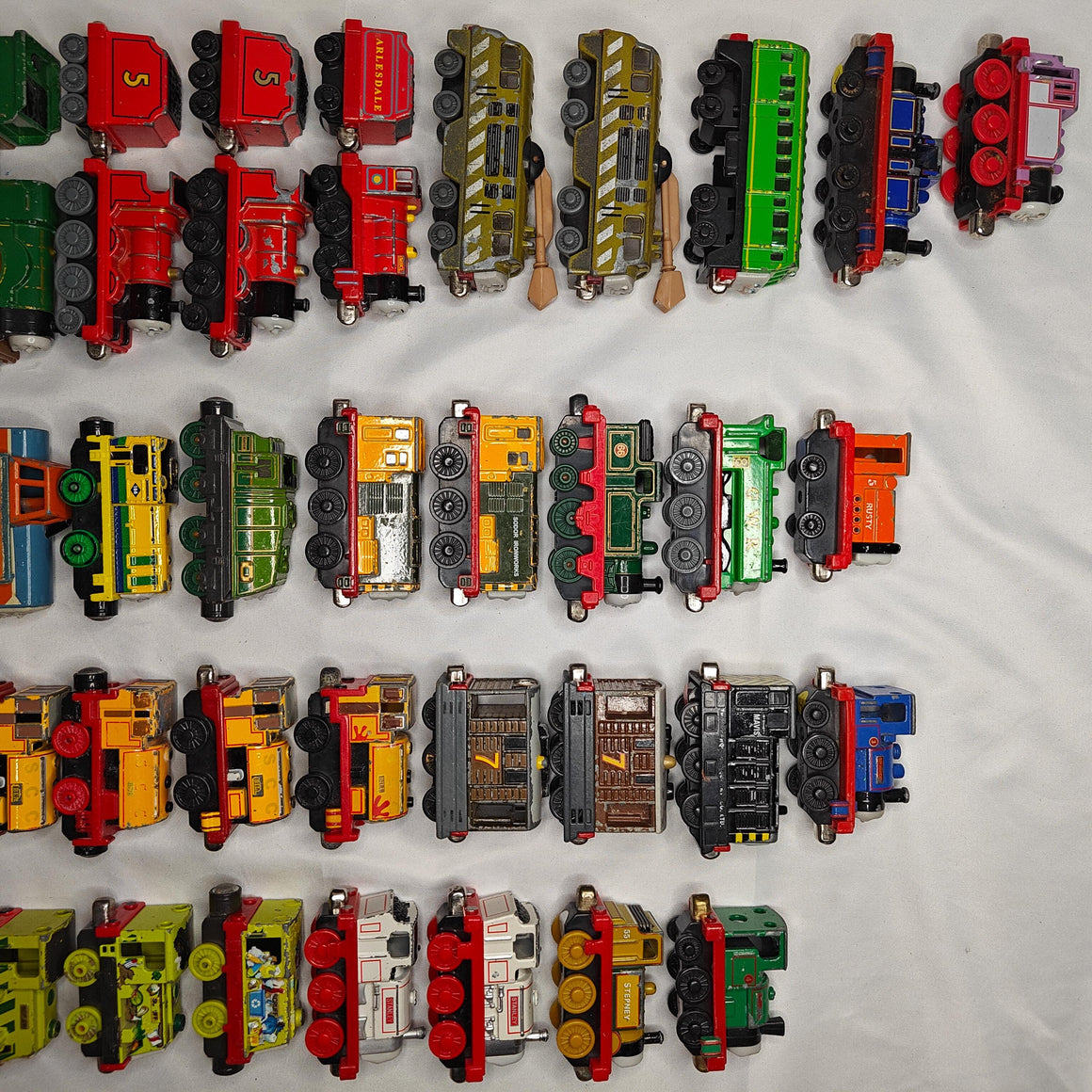 This listing is for the Thomas & Friends Take Along AND Take-n-Play Diecast range. Released in the US initially in 2002, this line featured pocket-sized die-cast models and playsets based off of the characters from Thomas & Friends television series. Many characters that were trains, cars, and tenders were miniaturized and became collectible items as well as toys. In 2009, The original Take Along range was discontinued after Fisher-Price acquired the rights, and rebranded the range to the Thomas Take-n-Play. That line would also then be discontinued in 2016 for another range to take its place. The characters are getting harder to find and increasingly come in worse and worse condition. The goal of this listing is to make the different years, models, versions and even quality more accessible.